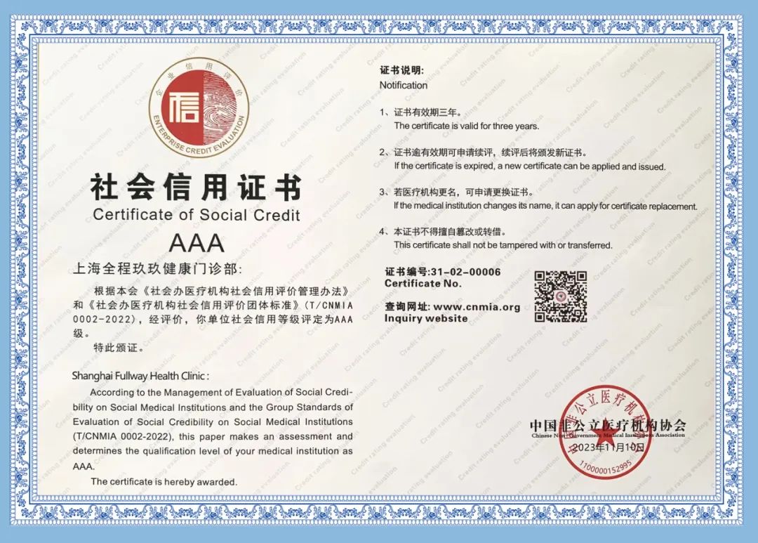 自2020年首次獲評以來,全程玖玖健康門診部鞏固和發展“雙評”工作成果,持續推進信用和醫療質量服務能力建設,不斷提高醫療服務水平和運營管理能力,先后獲得上海市社會醫療機構抗擊新冠肺炎疫情先進集體、上海市社會醫療機構“先進集體”、全國“民營醫院管理年”活動先進集體等榮譽稱號。